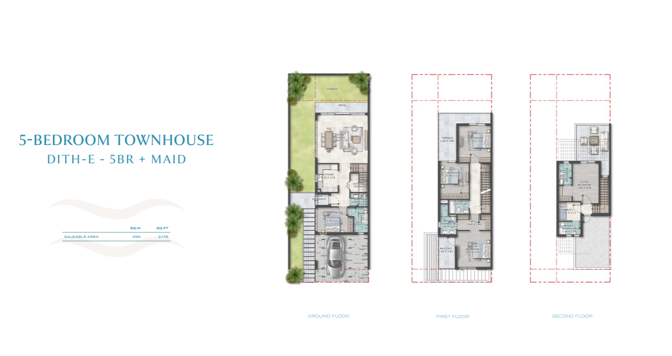 5-Bedroom Townhouses (~3,178 sq. ft) – starting from AED 3,870,000.