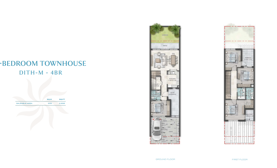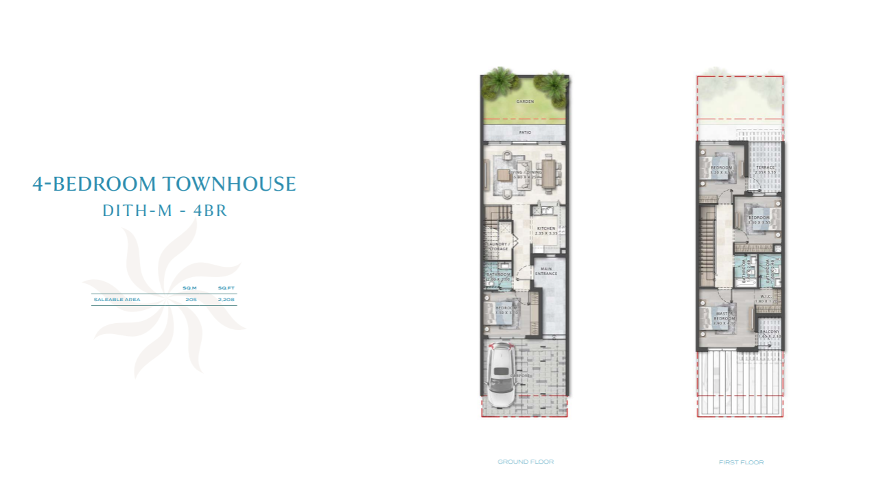 4-Bedroom Townhouses (~2,208 sq. ft) – starting from AED 2,423,000.